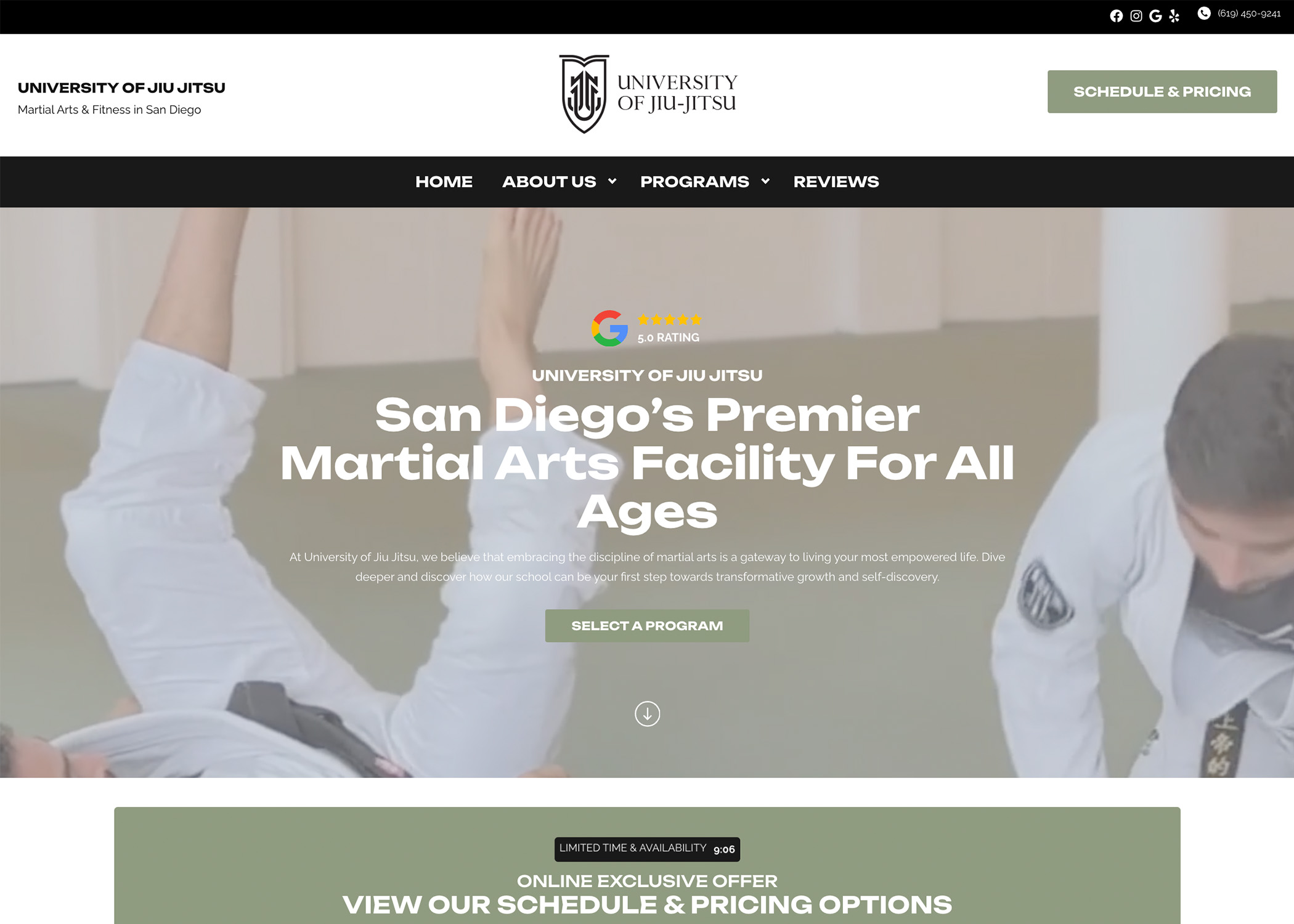 Clean, modern, and wellness-forward—this website captures the high-performance culture of San Diego’s top Jiu Jitsu gym.