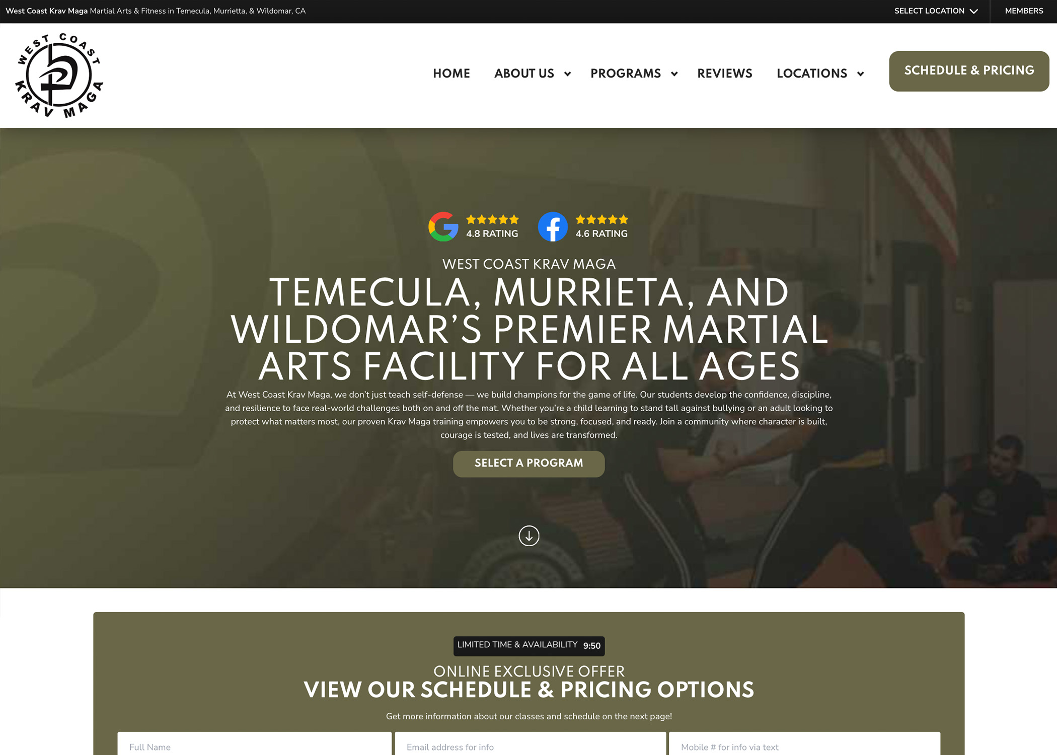• Family-Focused Content: Dedicated pages for Kids, Teens & Adults, and Family Martial Arts ensure that every visitor finds their place fast.