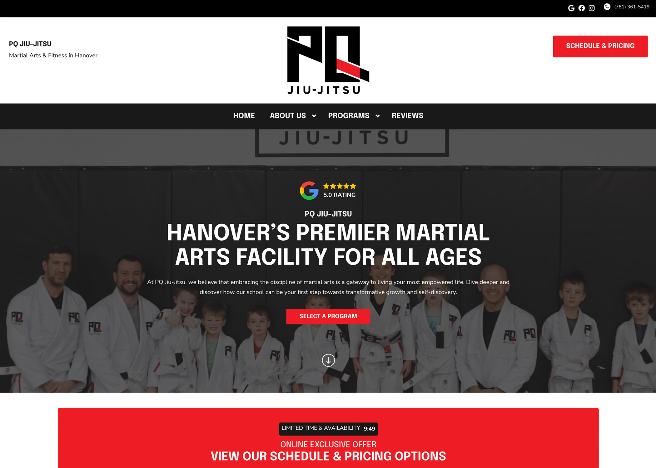 PQ Jiu Jitsu’s site proves that heart, clarity, and hyper-local SEO make for an unbeatable combination in small-town martial arts marketing.