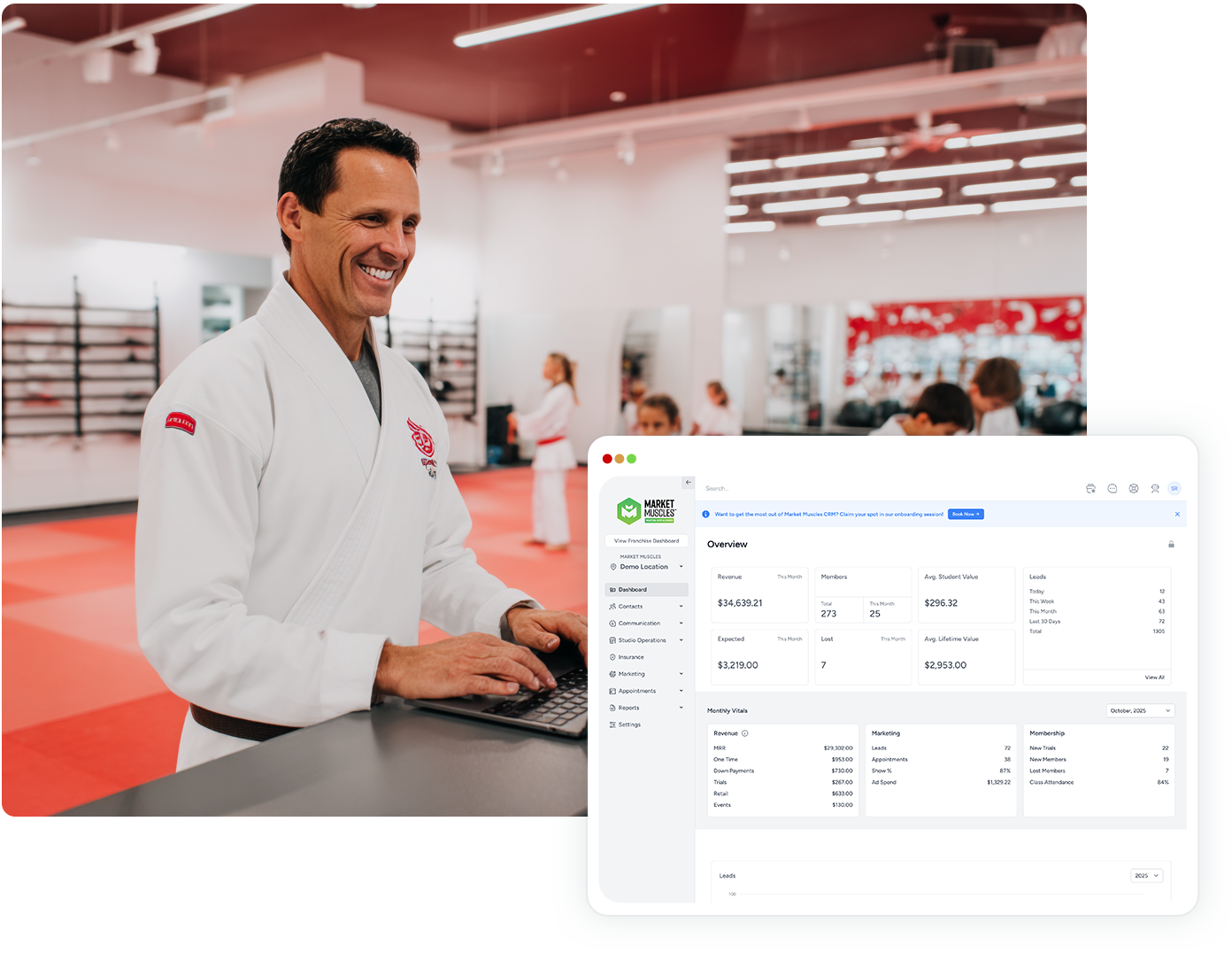 Market Muscles brings everything together with a seamless martial arts CRM software and martial arts website built specifically for studios. Manage leads, automate communication, handle billing, and track student progress—all from one connected platform that’s designed to simplify your day-to-day operations.