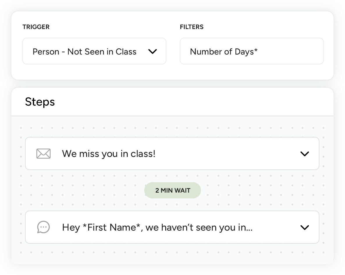 Spot students who haven’t shown up in a while and take action fast. Personalized automations help you reconnect with at-risk members and reduce dropout rates.