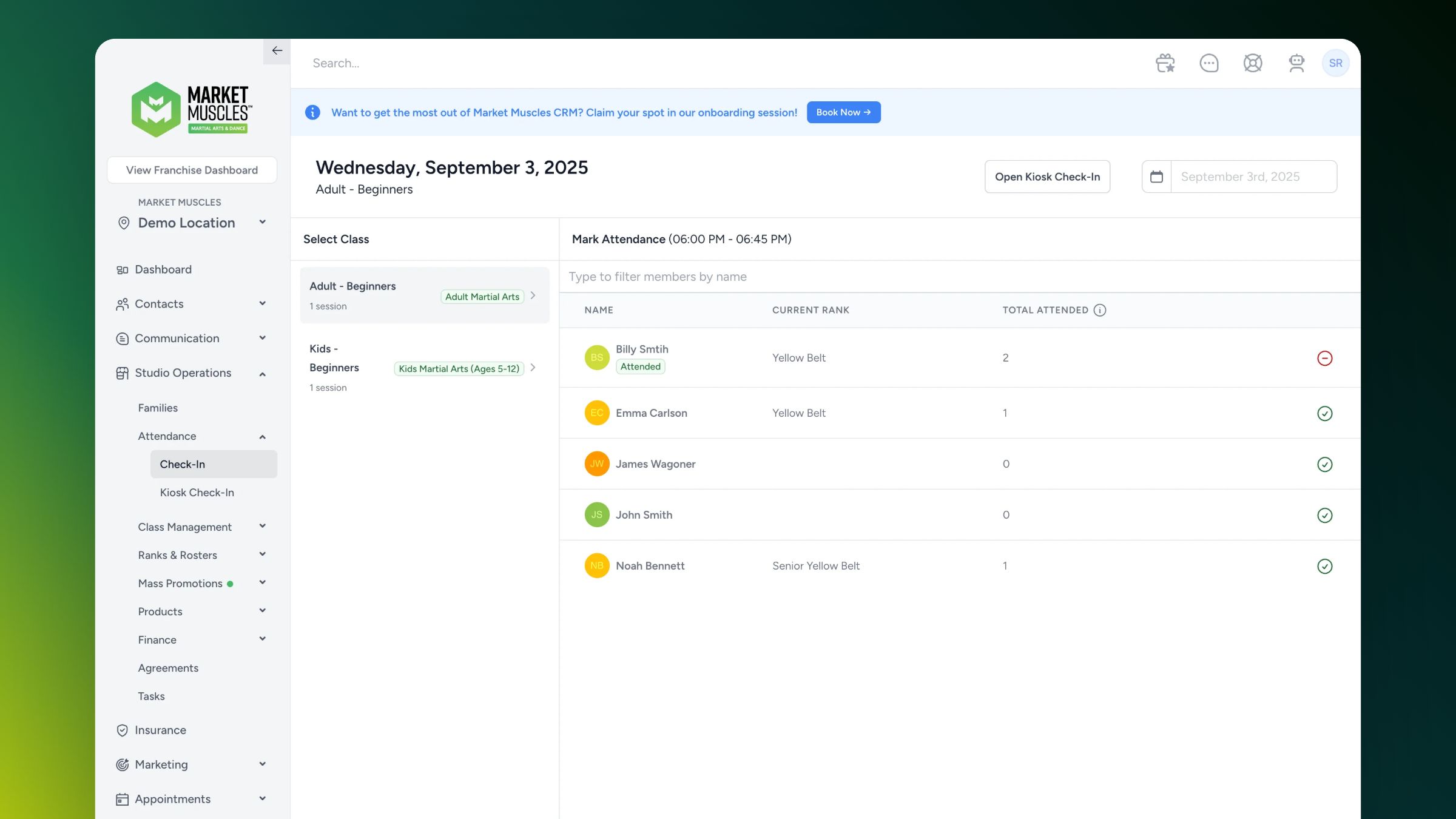 Attendance tracking is more than record-keeping—it’s your front line for retention, rank progress, and long-term student success.