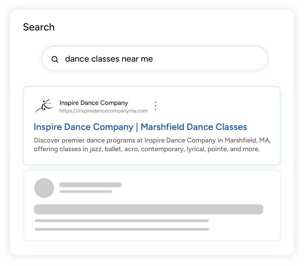 We target the keywords your future students are actually searching for—like “karate near me” or “dance classes for kids”—to get you visible quickly in your local area.